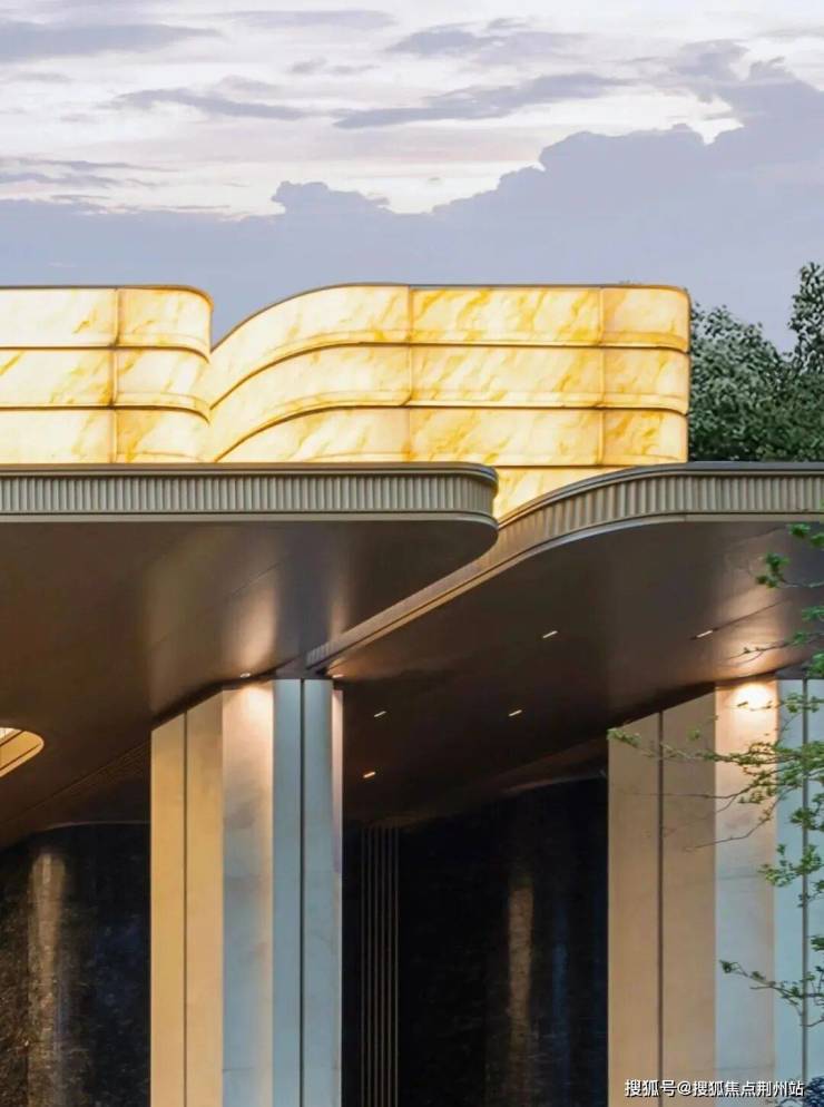 手工锻造的巨幅铜门,于光影交错间流淌温润质感,尽显奢华风范。将奢石、不锈钢、仿古铜等现代材质进行简化与组合,以模仿”金镶玉“的传统装饰效果,应用于整体立面设计之中,突显东方瑰丽气质。