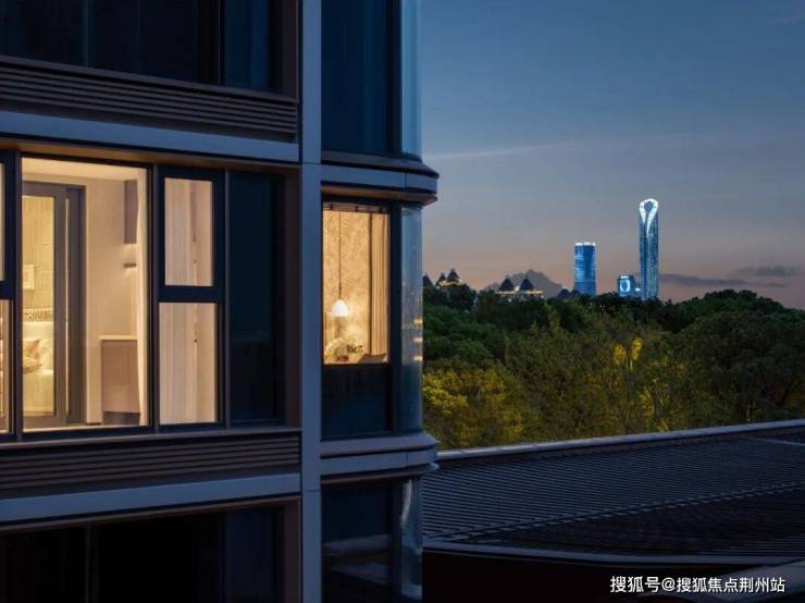 极简的线条、大幅的玻璃立面,合院以一种“隐贵”的姿态,将光、风、景请进室内。窗外是私家庭院,远眺是湖光天色。邻户间的竖向遮光构件、立面的格栅阳台,这些隐于无形的设计,是对私密的高级守护。而雅灰鎏金色的主调,则用当代色彩转译了苏州淡雅温润的城市气质,将建筑织锦为一幅可传承的艺术藏品。