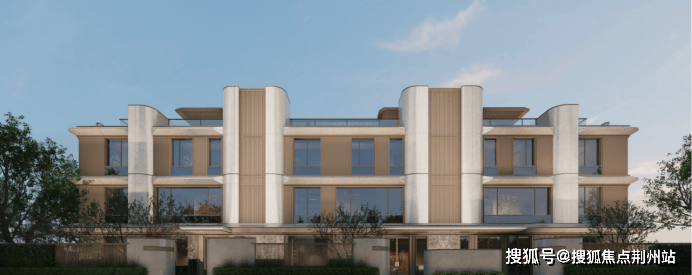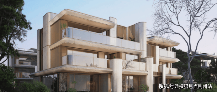 ·【千帆归港温润立面美学】通过错落有致的石材面与曲线的组合,在刚与柔的对话中构筑起兼具雕塑感与灵动感的立面形象,对节点的细腻刻画,体现一种温润典雅的立面美学;