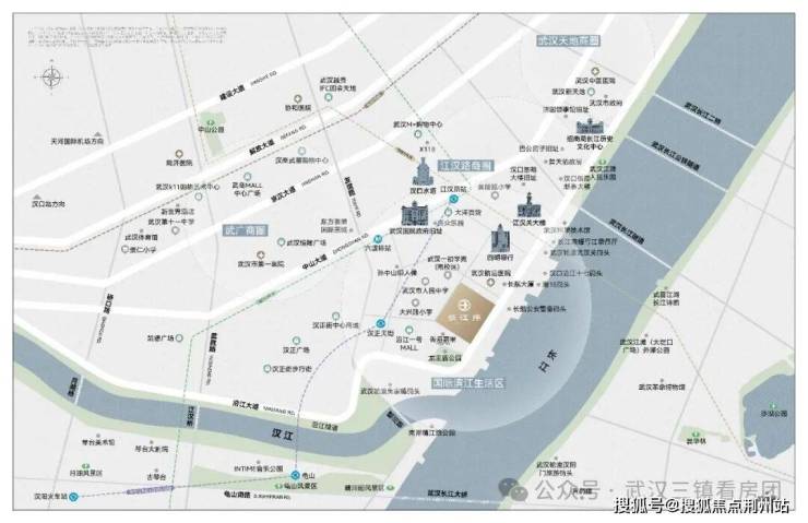 沿江大道、中山大道、江汉路等城市交通主脉在侧,近邻地铁6号线,2号线、13号线(规划中)三轨交汇,武汉长江大桥、晴川桥、武汉长江隧道、武汉长江公铁隧道