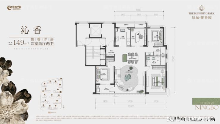 总建筑面积约10万方,容积率仅2.2,规划有10幢洋房与5幢高层,主力户型为建面155 - 259㎡的精装大平层,定位为“全洋房 + 全改善”,树立了宁波高端人居新标杆。