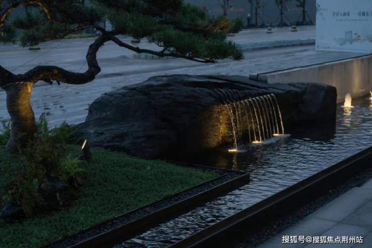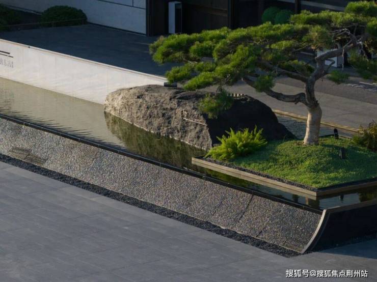 门堂前一眼看到重金打造的“松石望府”,精选极具中式韵味造型的名贵黑松搭配远赴千里寻觅而来的黑山石相得益彰,一松一石,一静一动,相映成趣,伴随着叠水的潺潺声……这精心设计的入口,不仅是一处景致,更是心灵的迎接仪式。