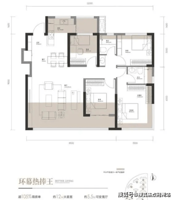 号称优化后得房率约105%-110%