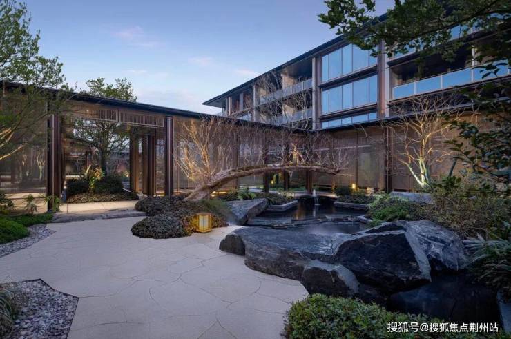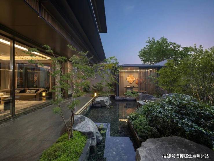 漫步于光影交织的幽静庭院,您将踏入一方充满诗意的天地。潺潺流水映照着婆娑树影,挺拔树姿为这片空间注入向上的生机,纵向延伸出无限的视觉张力。这座下沉庭院,不仅拉近了建筑与自然的情感共鸣,更使室内与景观紧密相连、和谐相融。每一扇窗户,都犹如框中的一幅生动山水画。
