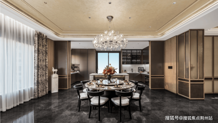 下沉式百平社交客厅,多功能厅、餐厅、客厅、西厨酒廊巧妙连通,270°全景阳台,揽尽约4200㎡水系景观。超大横厅使得空间更灵动,既相互独立又和谐统一,满足娱乐、休闲、居家等多元需求。这种多元空间的构建,为家庭社交提供了更多的可能性。