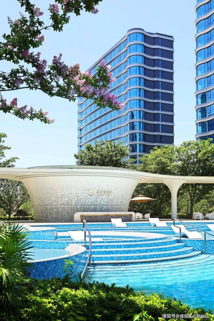 约1700㎡的水面,远超正规泳池;约24米的大面宽曲面池壁,更将这一汪湛蓝融入生活;而到了夜晚,池底13000个光纤灯,营造出宛如星空般的梦幻场景。