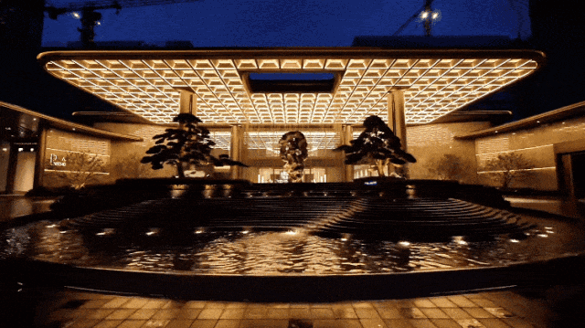 再比如项目的门头,按照世界级的豪华酒店标准打造,环岛落客设计、爱马仕灰大理石景墙和顶部古铜色的“华盖”设计,第一眼确实有种到达豪华度假酒店的既视感。