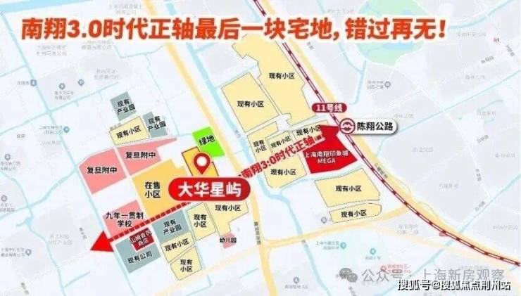 而后经股转,大华集团持股90%,定名大华星屿!项目位于嘉定区南翔镇,东至竖张泾-华曹江,南至嘉前路,西至鹤槎路,北至嘉程路。地块临近山姆会员店(嘉定店)和嘉闵高架,距轨交11号线陈翔公路站约900米。