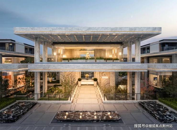 看的见的地方,都被绿城玩出了海量花样,如门头:是杭州此前从未见过的波特曼风格,复杂立体的十字门庭,既有恢弘的气势,也有层次感十足的立体景观。有精致的树阵水院,也有高差贯穿三层的下沉式庭院。