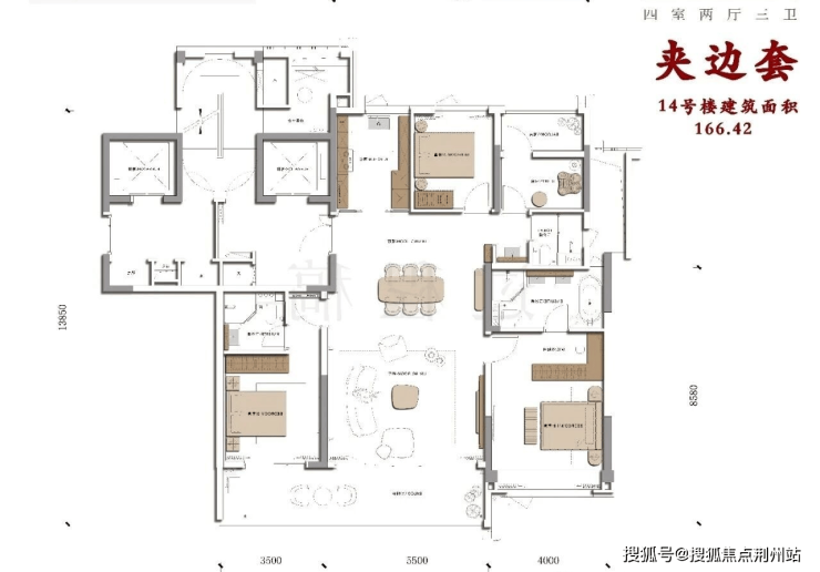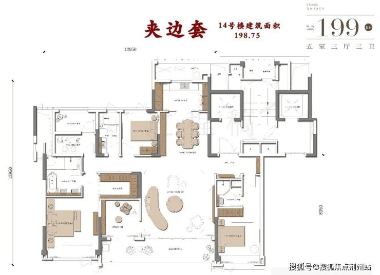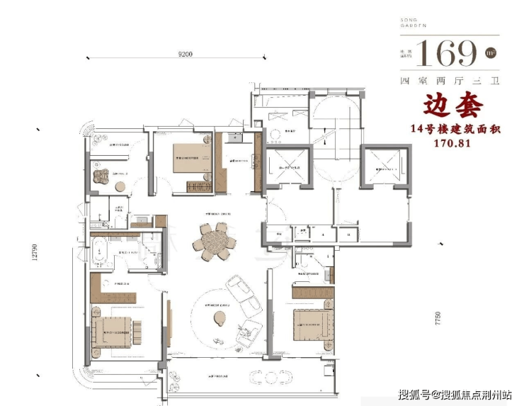 户型设计:高层得房率高达90%-93%,169㎡户型南向面宽13米,199㎡户型实现“五房两厅三卫”,空间利用率高。