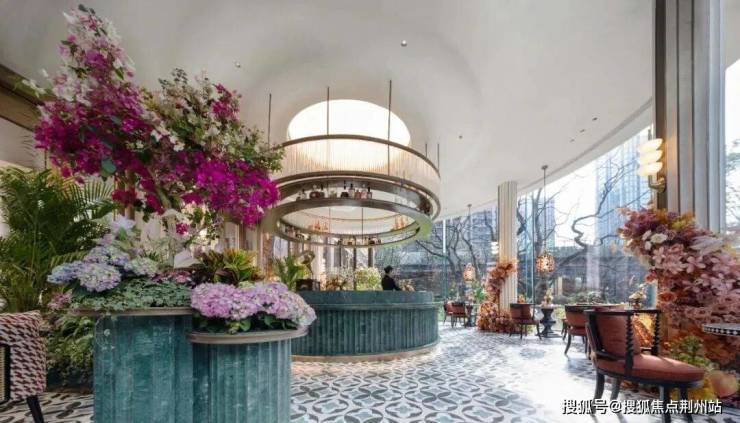 比如,1号楼的架空层,起初是一个弧形的共享休闲空间,呈现出开放式的高端酒店布局,通透大气。但考虑到武汉“冬冷夏热”的气候特征,预计业主们无法在此长期驻足停留,此地既不能休闲,也无法社交,或将彻底沦为摆设。于是,开发团队推翻了原设计方案,经过数十次修改,调整为具有法式浪漫的四季恒温室内「琉光花房」,以艺术眼光来看,其色彩搭配非常符合当下的审美。
