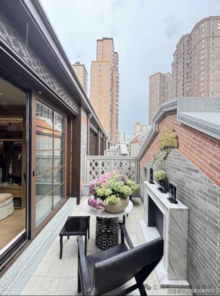 而在与砖连接的窗体,保利永兴里别墅的窗框及四周采用了仿木纹铝型材和铝板,门窗套为浅色石材。
