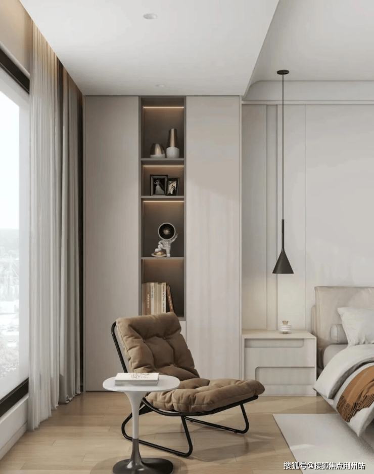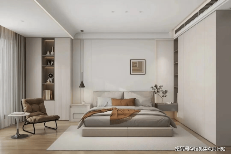 淡然,是一种生活态度,木意沿墙壁蔓延,基于浅色调的语言,主卧完成纯粹的空间构成与浪漫的美学表达。整体强调微妙光影之趣,极致留白配合几何构图,助人松绑情绪。
