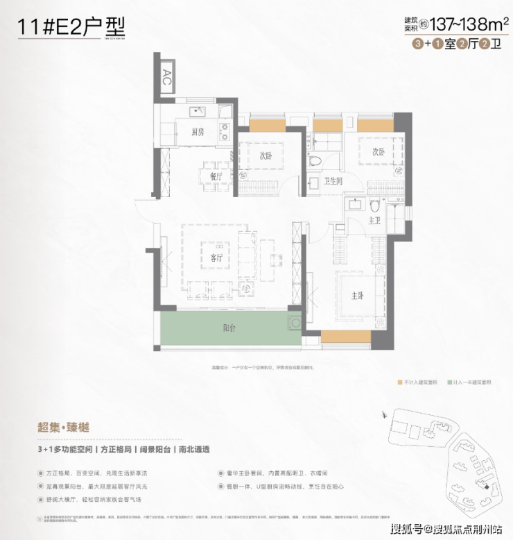 该户型为12号楼边户,南北通透,三面采光,两开间朝南。该户型两个阳台、两个飘窗,室内得房率较高。