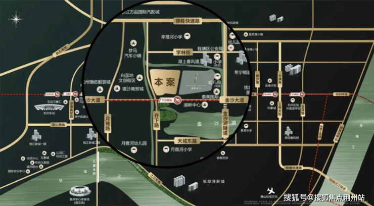 月映金沙属于钱塘区的“鸡头”板块 — 金沙湖板块,头部板块享用的么就是区域的头部资源。