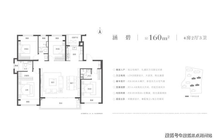 作为古城内稀缺的低密洋房,项目打造了6-16F的洋房和小高层,容积率约1.6,主力户型建面约143㎡、160㎡、180㎡,均为四房设计,为纯粹改善客户而定制。