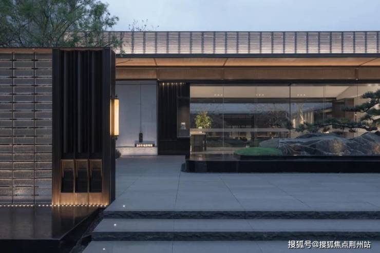 保利姑苏瑧悦取法苏州园林的廊桥框景线条美学,演绎为框体线条造型和简洁舒展的立面肌理。在地取材,运用质朴拙雅的御窑金砖,提取粉墙黛瓦的江南之色,定制兼具东方韵味和现代质感的蟒水纹。