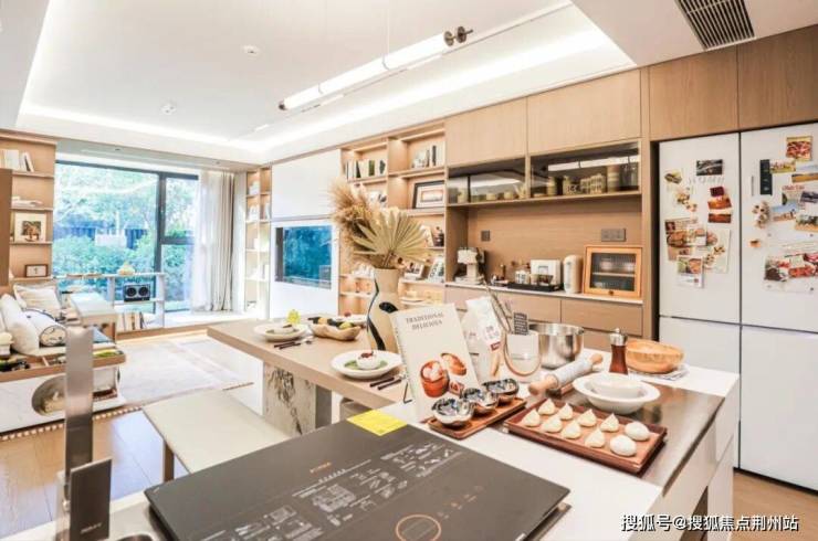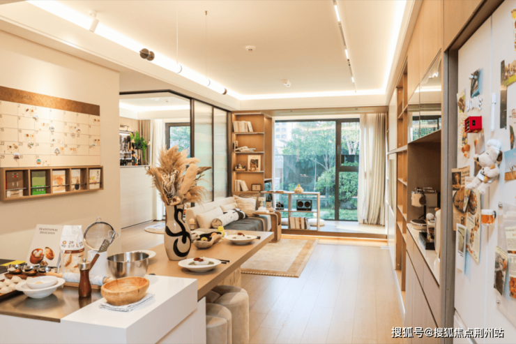 步入室内,玄关墙预留S型墙面空间,小户型也能容纳大冰箱。“S墙设计冰箱+玄关柜+电视柜”形成的超大容量收纳空间,有助于业主快速找到所需物品,提升厨房使用效率,增强生活的幸福感。