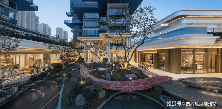 项目引入了悬浮森林的概念,不仅室内带空中花园,公区以及园林也是立体层叠设计,将虹桥步道+微缩地形+自然水景巧妙融合,把多重空中花园微景观带入整个社区。