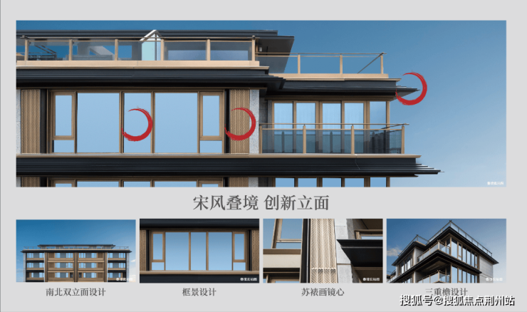 框景手法借鉴传统园林借景艺术,令窗外风光如诗如画;南北双立面设计,呼应苏州双面韵味,同时享有都市视野与静谧园景;三重檐设计转译东方礼序,苏裱画镜心般的细部处理,处处流露东方雅致质感。