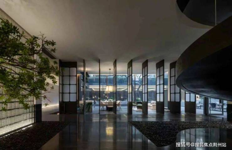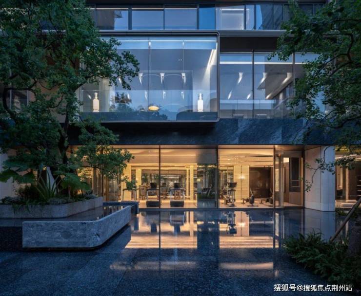 约66米的横向迎宾水轴,12棵特选乌桕漂浮在水面上,展现东方意境的沉静内敛。中心水院设计犹如安缦酒店,水榭会客厅、林下画廊、下沉庭院,叠水、喷泉、镜水,每一处都是一幅美丽的画卷。