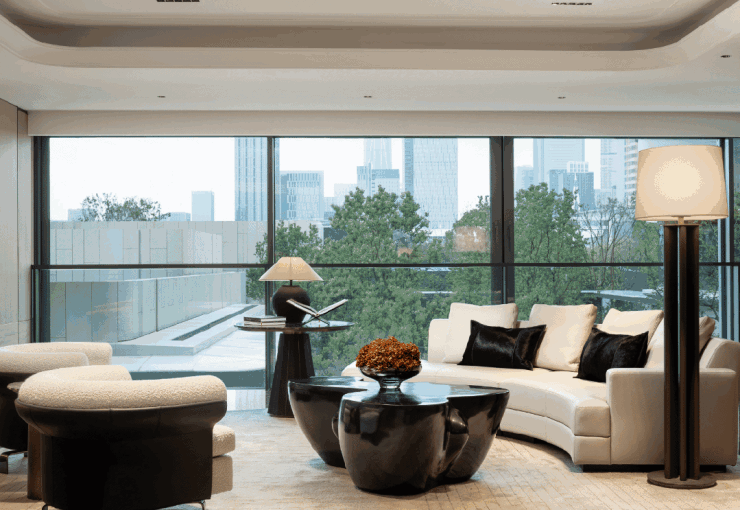 内部结合宁波当地文化与建筑元素的设计,更是将“自然之境,绮丽隐奢”的设计理念完美呈现,利用玻璃幕墙模糊空间边界,利用镜面墙延伸空间宽度,当阳光倾洒而下,绿意涌进室内,让人分不清置身何处,只感觉无限闲适与惬意。