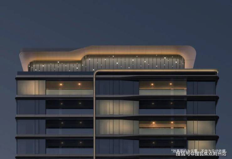 立面公建化立面抛弃了传统的三段式做法,充分融合在地文化立面语言以“向水而生”理念,采用了全通透水晶立面+腰间水波纹铝线条,打造出更符合东方美学的立面和极具漂浮感的层叠挑檐屋顶,实现如春云浮空般的优雅意境。