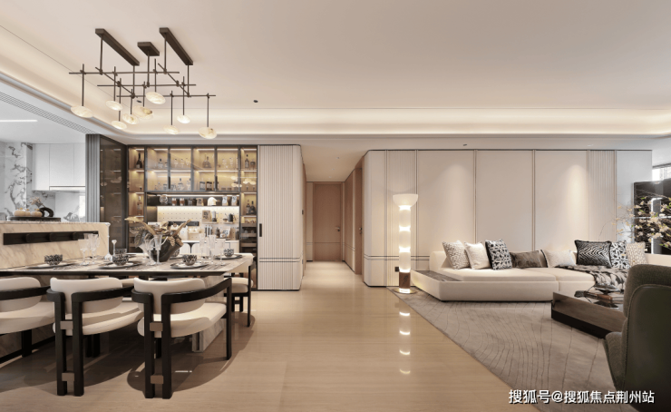 建面约158㎡的摩登海派臻境,以"宽"与"变"诠释生活智慧。约7.7米宽厅与约14.9米的南向面宽,将四季风光与城市夜景从容收纳;灵活可变的X空间,则是对未来生活的智慧预留——或是开放式书房,或是独立休闲区,让家成为随生命历程自由生长的容器,盛放家族的温暖记忆。