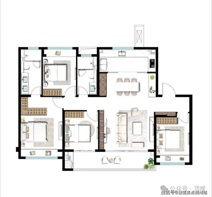 项目主力户型为128㎡及143㎡四房,得房率高达83%,远超市场平均水平。