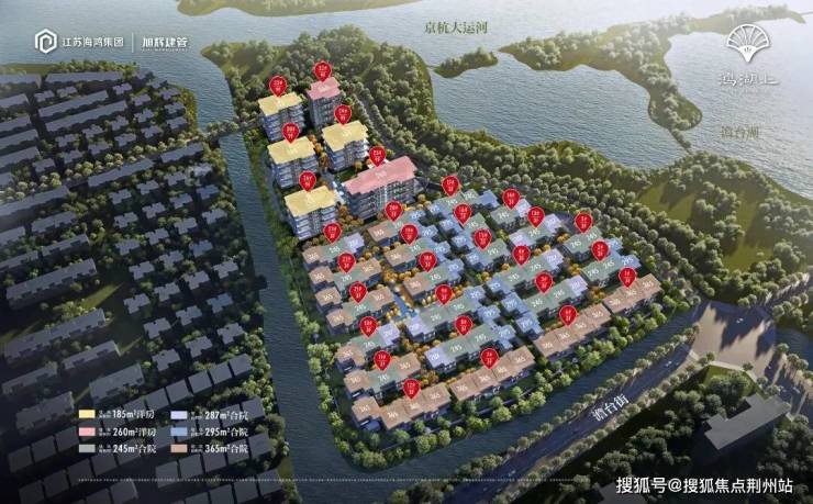 整个项目打造23幢102户3F合院+及6幢9F四代洋房,超低容积率1.02,三面水系环绕,仅196套。项目整体南北分区造园,北为洋房南为合院。