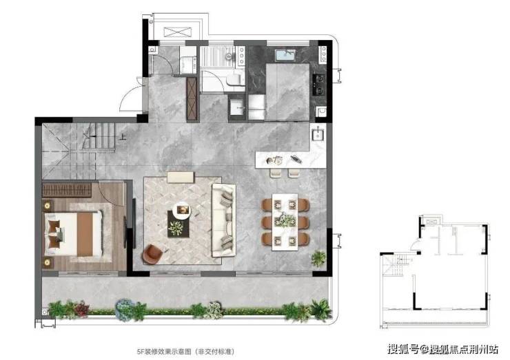 上叠(约 169㎡):5 - 6 层的云端生活空间,采用 LDKB 一体化设计,即客厅、餐厅、厨房、阳台一体化,形成轩敞开阔的公共活动空间,方便家庭成员之间的互动交流。更有约 55 - 60㎡星空屋顶花园,业主可在此打造家庭烧烤区、观景台、花园等,享受浪漫的户外生活。