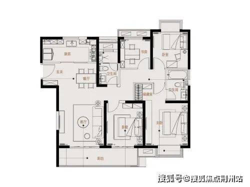 116平:三房两厅两卫,和98平相比,每个功能区的空间都要大一些。除了贯通阳台的卧室,南向主卧和北向次卧都做了飘窗,空间性价比略高于98平。
