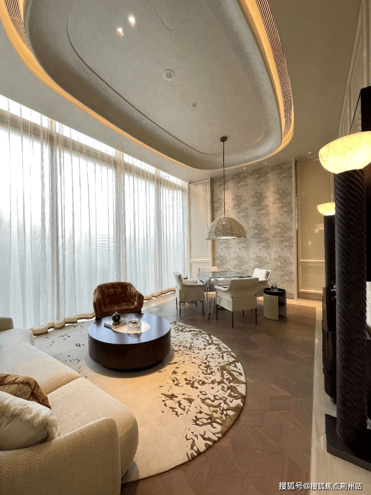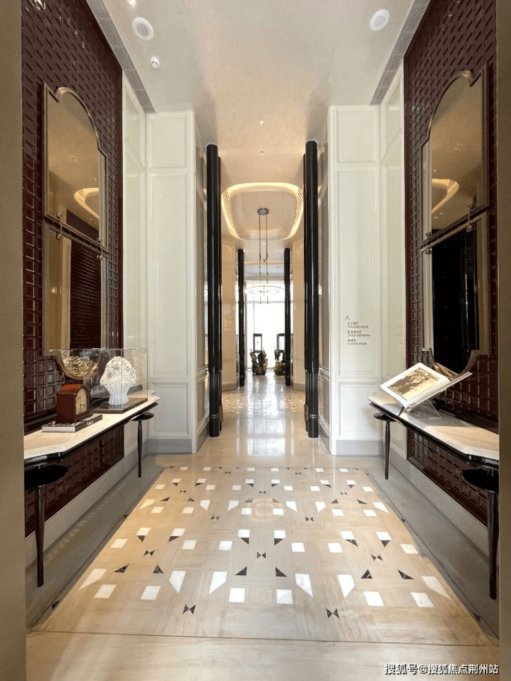 穿过「玉树门庭」,即进入项目生活馆。室内精装设计以嘉佩乐酒店为基底,隐奢风十足。