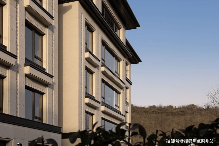 建筑向山而生,剥离繁复雕饰,以新中式风格,演绎东方情愫与现代造诣的惊艳邂逅。遴选葡萄牙米黄进口石材莱姆石,与深色铝板映合,搭配超画幅、高感光玻璃幕墙,折射天光云影,缱绻山色,尽显历久弥新的立面美学,构筑大地之上的隽美诗行。