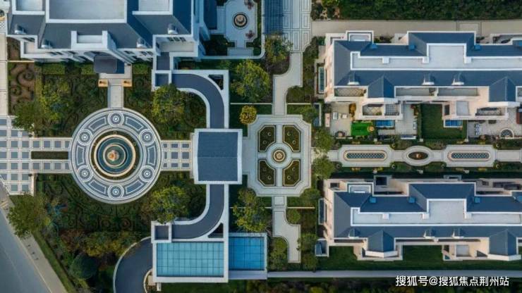 园林承袭法式宫廷造园规制,打造双十字中轴对称景观,仪式感十足。