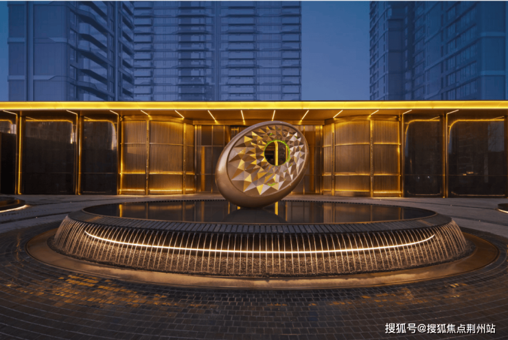 弧线曲面建筑外立面,约64米的巨幅金色拱形艺术门厅,给予了观者第一眼的视觉冲击。