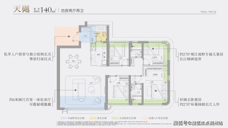 更值得一提的是其270°环幕视野设计。与传统江景住宅将视野局限于客厅主沙发或主卧飘窗不同,长江天元让江景成为生活的背景板。无论是家庭聚餐、朋友聚会,还是日常休憩,长江的壮美始终如影随形。这种“身在其中,江在四周”的沉浸式体验,真正实现了生活与自然的无缝融合。