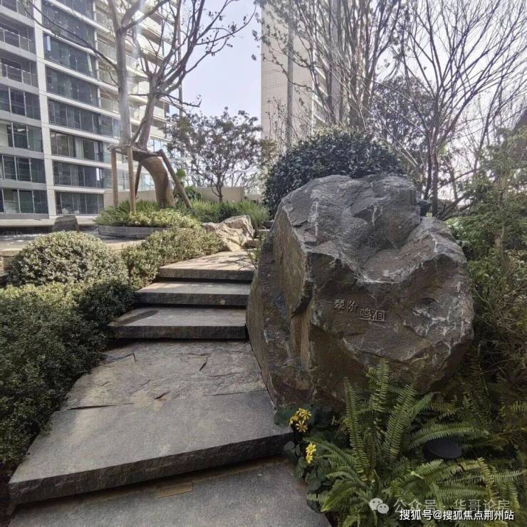 首先印入眼帘的是一个高约5.3m的叠水飞瀑,营造“未见其宅,先闻其声的意境”,公区地面和登山步道全部用石材铺装,步道旁,树林间点缀了众多的天然山石,据介绍,小区入口广场和中心园林运用的天然原石达600多吨。