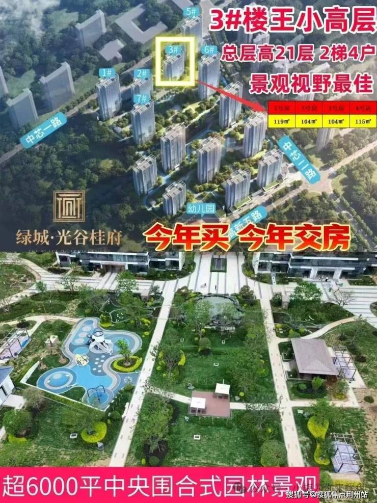 3号楼共1个单元,总高21层,一楼为架空,两梯四户,共计80套房源,主打建面约104、115、119平户型。绿城光谷桂府本次推出的3号楼预计年底交付属于准现房销售了。