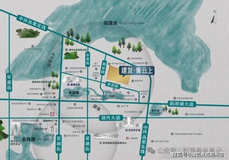 【景区IP林立】活力封面的青剑湖、生态休闲的阳澄湖、都会生活的翡翠湖交织湖区的日常,约1km直抵阳澄湖湖滨生态体育公园、约500m直抵翡翠湖生态公园、唯亭公园、仙樱湖公园、莲池湖公园,以生态宜居为特色给园区一个置业新主场。