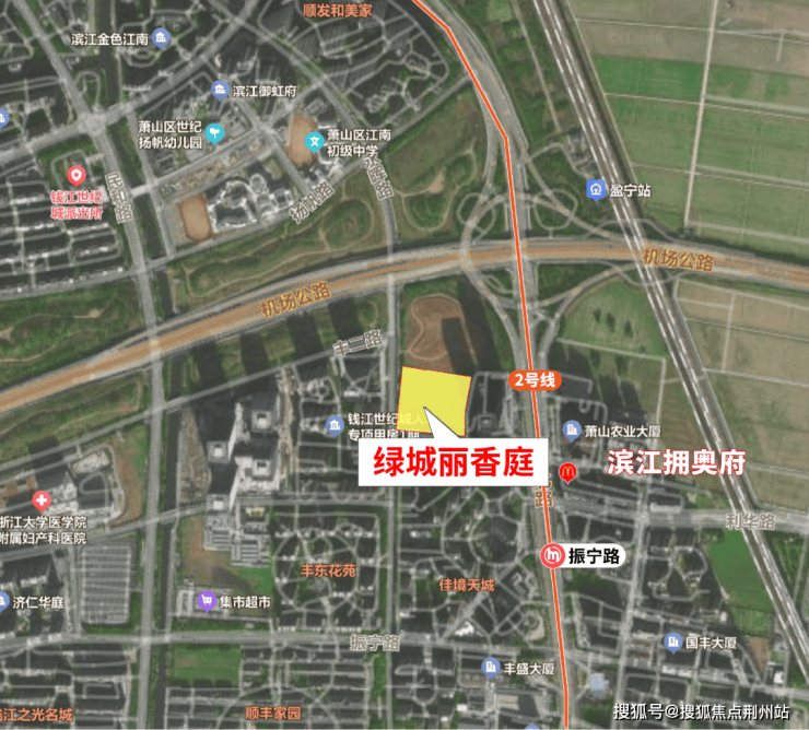 绿城丽香庭,位于世纪城核心单元,是当前泛奥体圈在售项目里,距离地铁口最近的楼盘:直线距离地铁2号线振宁路地铁站仅约150米。