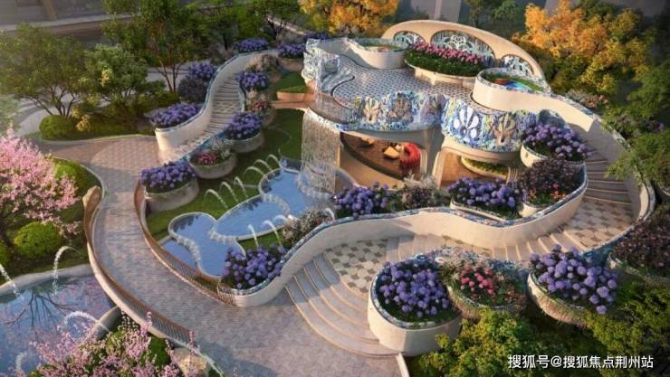 落差高达约20m纵深立体叠瀑,打造至今武汉前所未见、近乎魔幻的立体景观体系。