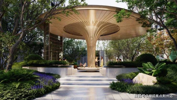极具标识性的建筑,层层交错的水景与植被,赋予整片中央园林极强的层次感