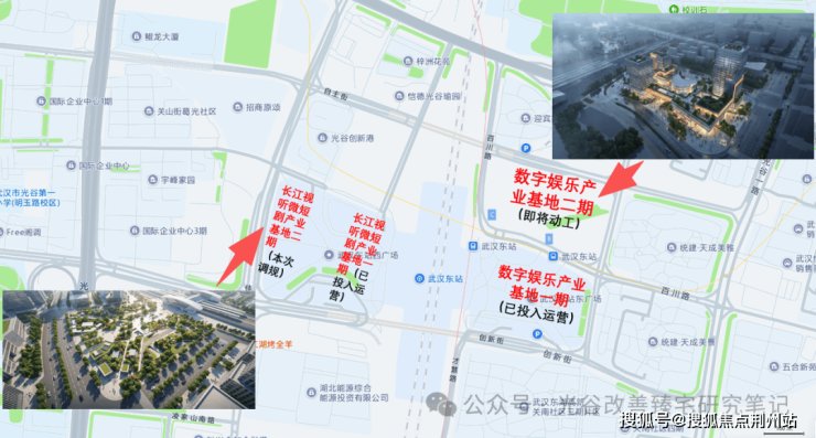 以下是长江视听微短剧产业基地一期,二期和数字娱乐产业基地一期,二期的落位图。