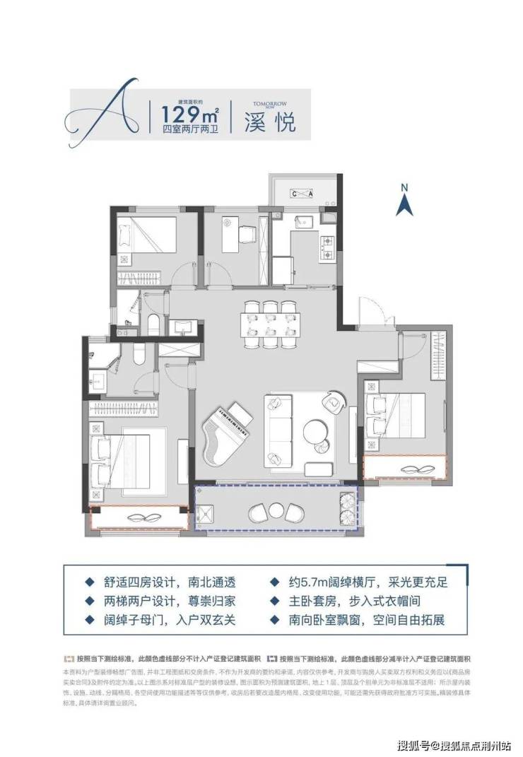 建面约129/148平米大四房,功能完善,南向大横厅,揽阳光入室。
