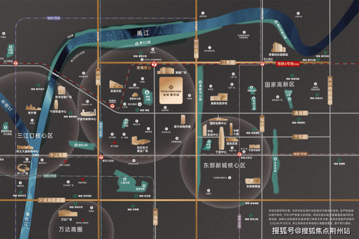 四纵:中兴路、福明路、沧海路、世纪大道。东西向通途路。项目北面江南路直达世纪大道链接整个城市南北(北接镇海,串联高新区、东部新城核心区、南部商务区、高教园区、南接甬台温高速宁波东)。项目西侧沧海路可直达鄞州中心区。