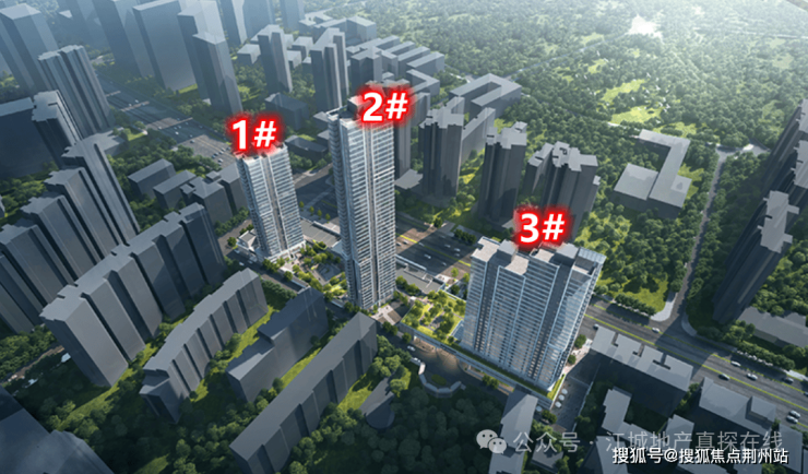 根据规划,项目由2栋高层一栋超高层组成,其中1号楼总26层、2号楼45层、3号楼32层,整体布局一字排开沿和平大道分布,具体楼栋分布如下图。