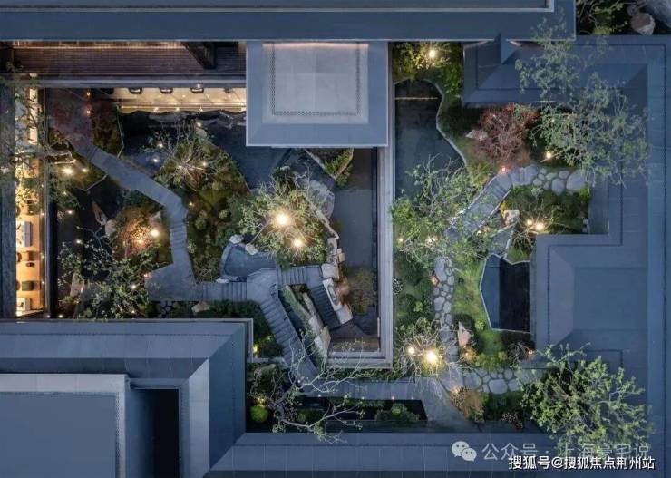 通过下沉会所庭院,将传统平面绿化转化为垂直的多层次园林空间,打造出了当代立体山体水景观,身处其中在步履起承转合间,串联起一幕幕诗画风景。