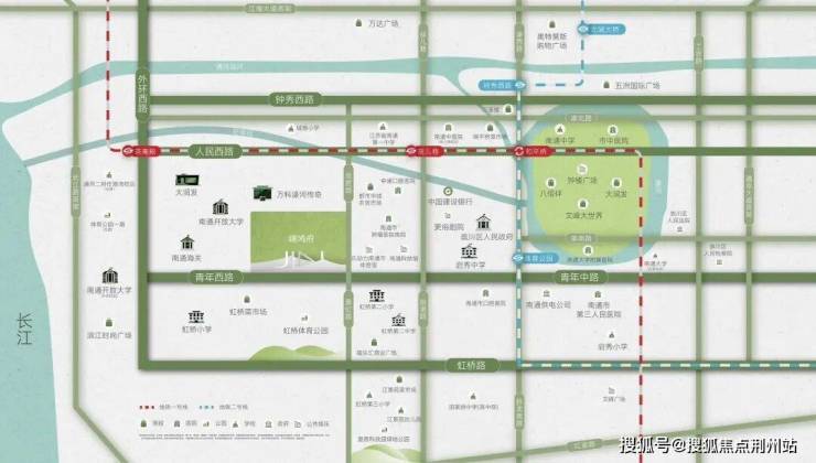 锦鸿府项目位于南通主城虹桥板块,凭借区位优势,将城市优质资源尽数纳入生活半径,形成“交通-商业-生态-教育”四维一体的醇熟生活圈:
