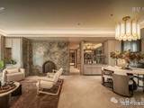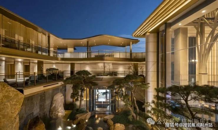 景观以「四境四巷」铺陈东方礼序,「五重归家」轴线串联宽约128米恢弘门庭、约15米叠石飞瀑、约13米榫卯转译的现代穹顶等。约1300㎡下沉式庭院采用三层立体观景设计,15米叠石飞瀑再现《溪山行旅图》的山水意境。